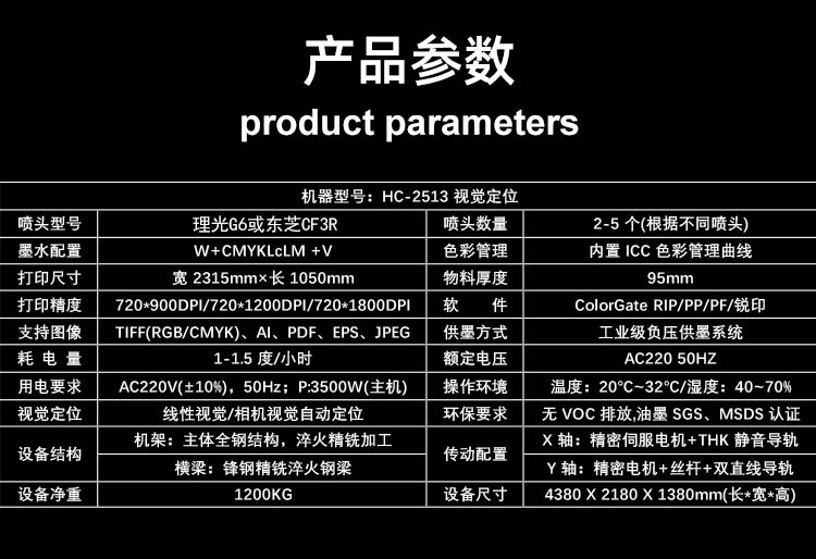 設備型號:HC-2513視覺定位UV打印機